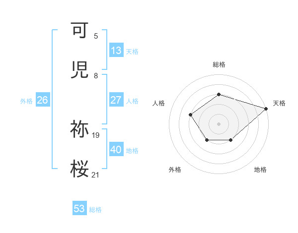可児 祢桜さんを姓名の画数から五運を鑑定