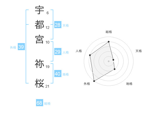 宇都宮 祢桜さんを姓名の画数から五運を鑑定