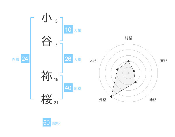 小谷 祢桜さんを姓名の画数から五運を鑑定