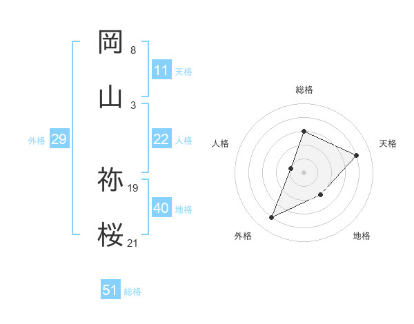 岡山 祢桜さんの外格は29画の4点!
