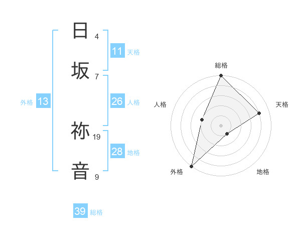 日坂 祢音さんを姓名の画数から五運を鑑定