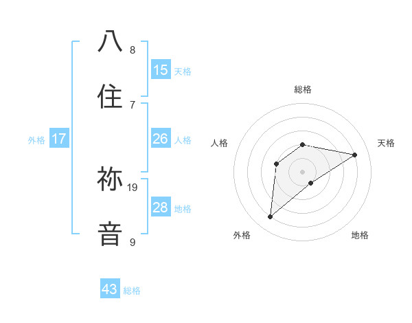 八住 祢音さんの総格は43画の2点!