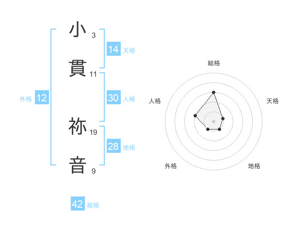 小貫 祢音さんを姓名の画数から五運を鑑定
