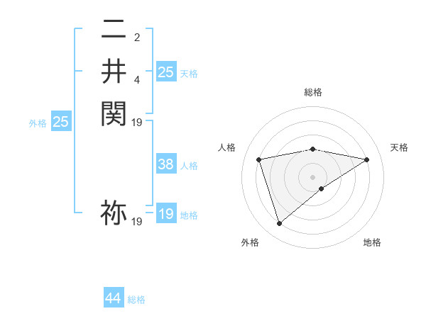 二井関 祢さんの総格は44画の2点!