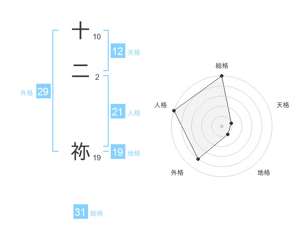 十二 祢さんの総格は31画の5点!
