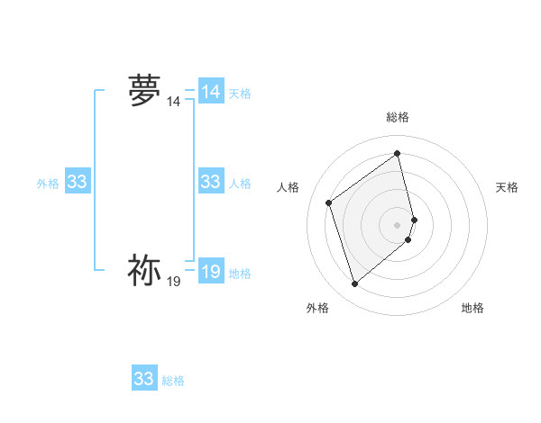 夢 祢さんの外格は33画の4点!