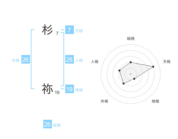 杉 祢さんの総格は26画の2点!