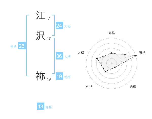江沢 祢さんの総格は43画の2点!