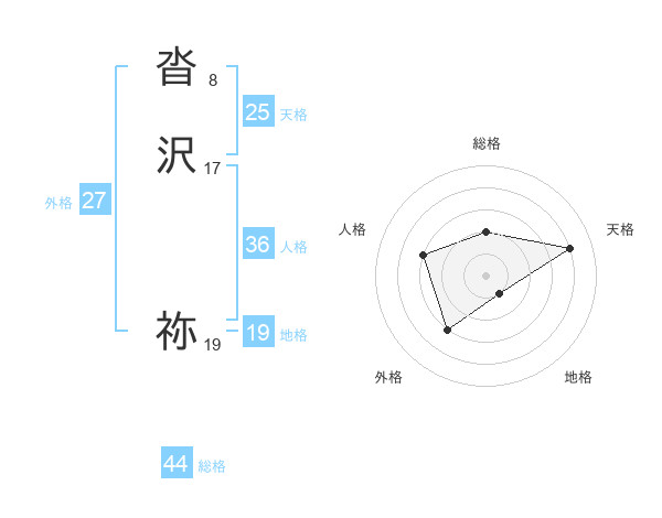 沓沢 祢さんの天格は25画の4点!