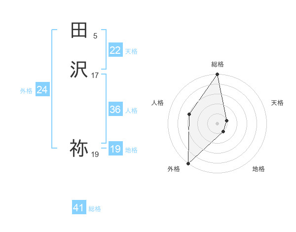 田沢 祢さんの総格は41画の5点!