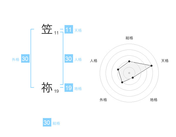 笠 祢さんの総格は30画の2点!