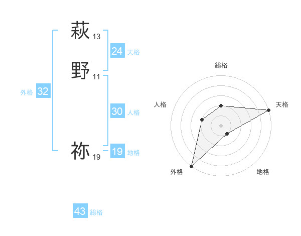 萩野 祢さんの外格は32画の5点!