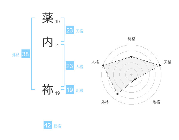 薬内 祢さんの天格は23画の5点!