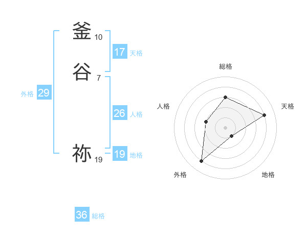 釜谷 祢さんの天格は17画の4点!
