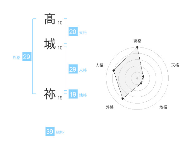 髙城 祢さんの総格は39画の5点!