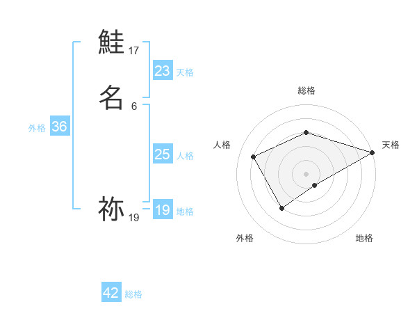 鮭名 祢さんの天格は23画の5点!