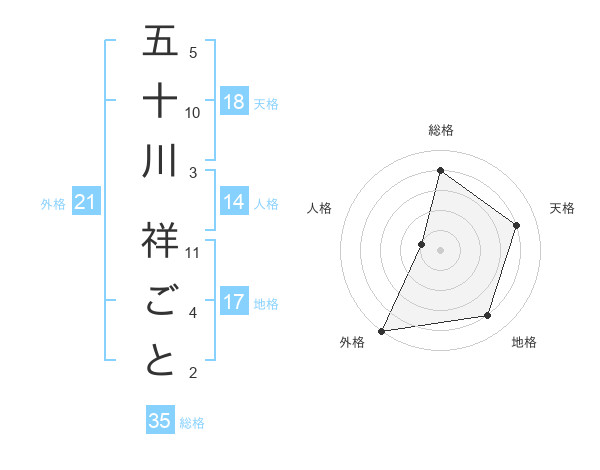 五十川 祥ごとさんを姓名の画数から五運を鑑定