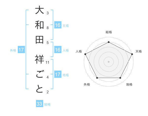 大和田 祥ごとさんを姓名の画数から五運を鑑定