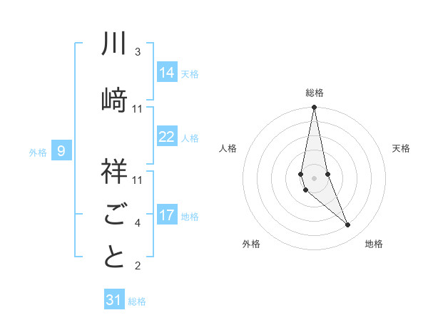 川﨑 祥ごとさんの総格は31画の5点!