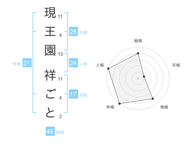 現王園 祥ごとさんの総格は45画の4点