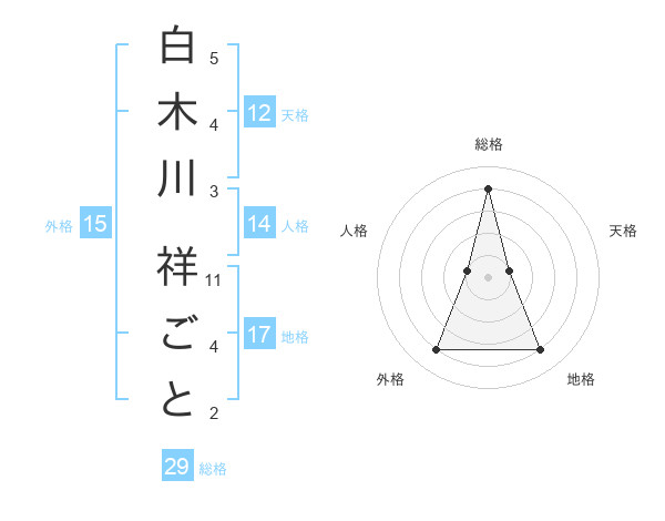白木川 祥ごとさんの総格は29画の4点!