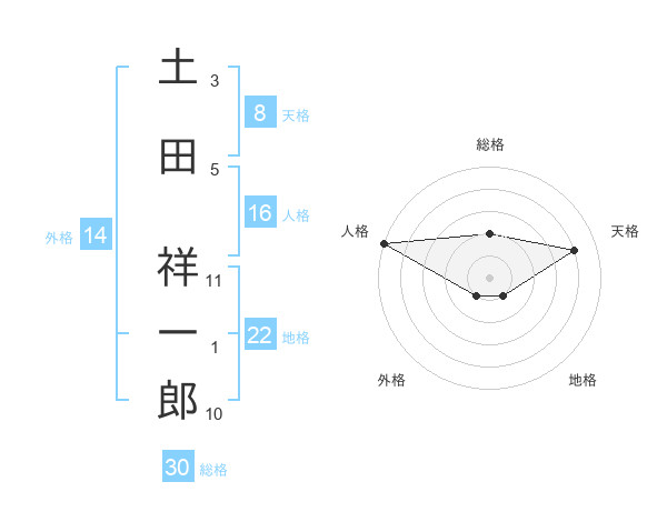 土田 祥一郎さんを姓名の画数から五運を鑑定