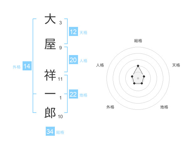 大屋 祥一郎さんを姓名の画数から五運を鑑定