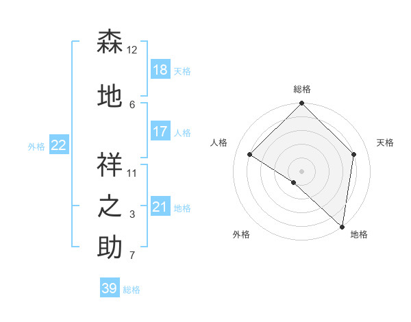 森地 祥之助さんを姓名の画数から五運を鑑定