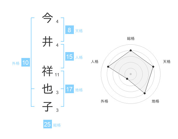 今井 祥也子さんを姓名の画数から五運を鑑定