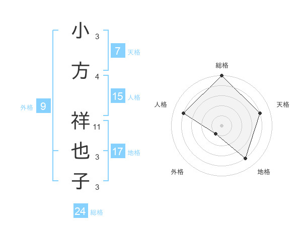 小方 祥也子さんを姓名の画数から五運を鑑定