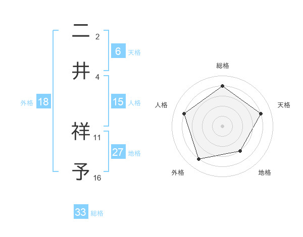 二井 祥予さんの総格は33画の4点!