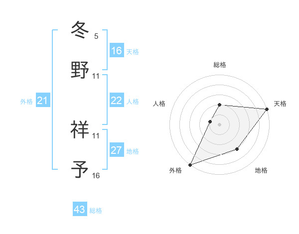 冬野 祥予さんの総格は43画の2点!