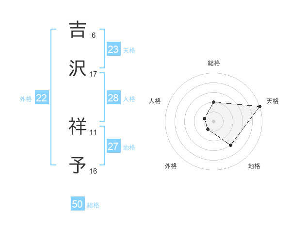 吉沢 祥予さんの天格は23画の5点!