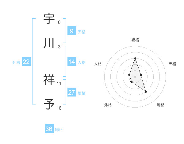 宇川 祥予さんを姓名の画数から五運を鑑定