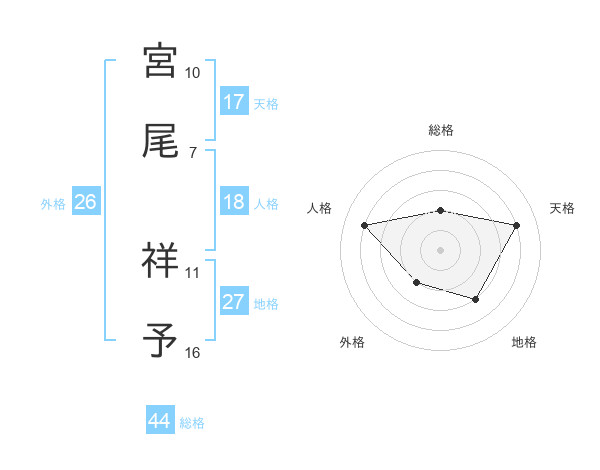 宮尾 祥予さんの天格は17画の4点!