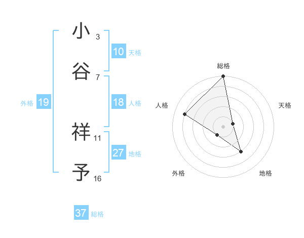 小谷 祥予さんの総格は37画の5点!