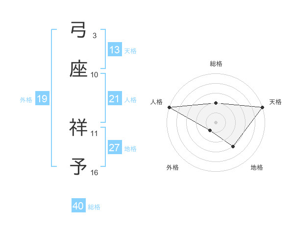 弓座 祥予さんの天格は13画の5点!