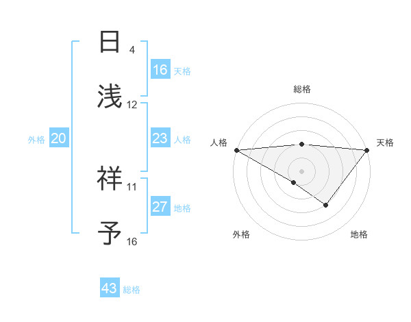 日浅 祥予さんの総格は43画の2点!