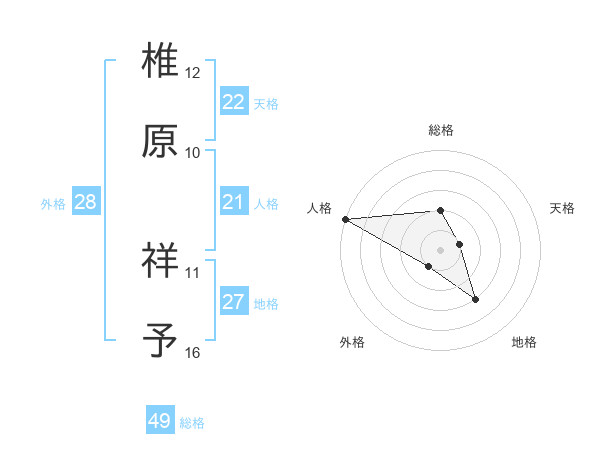 椎原 祥予さんの総格は49画の2点!