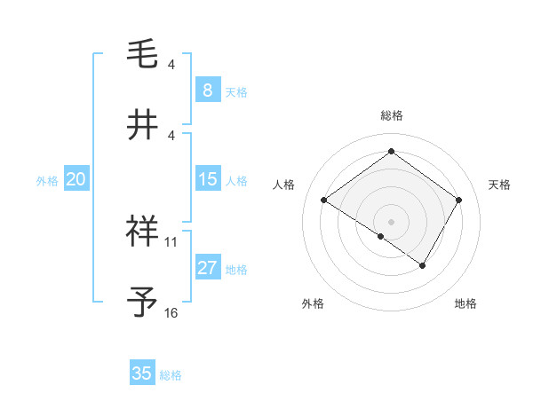 毛井 祥予さんを姓名の画数から五運を鑑定