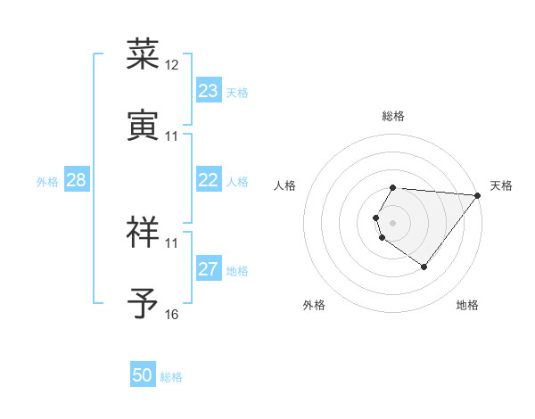 菜寅 祥予さんの総格は50画の2点!