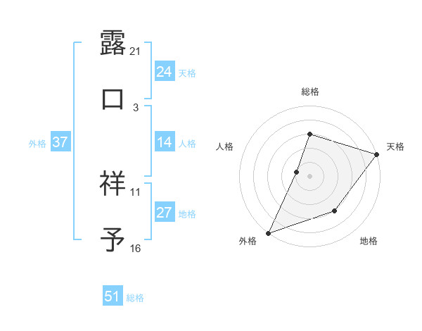 露口 祥予さんの総格は51画の3点!