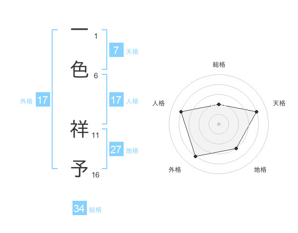 一色 祥予さんの総格は34画の2点!