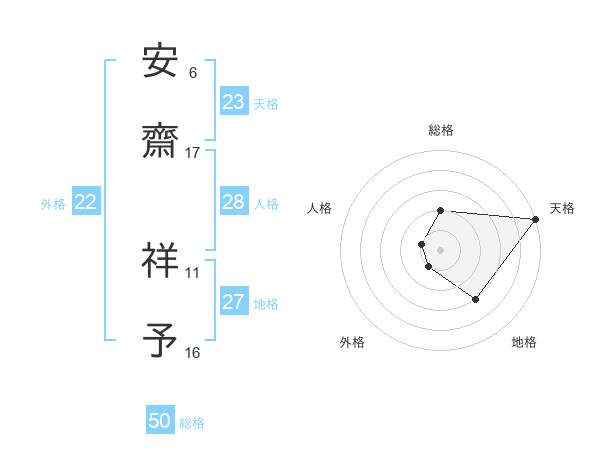 安齋 祥予さんの総格は50画の2点!
