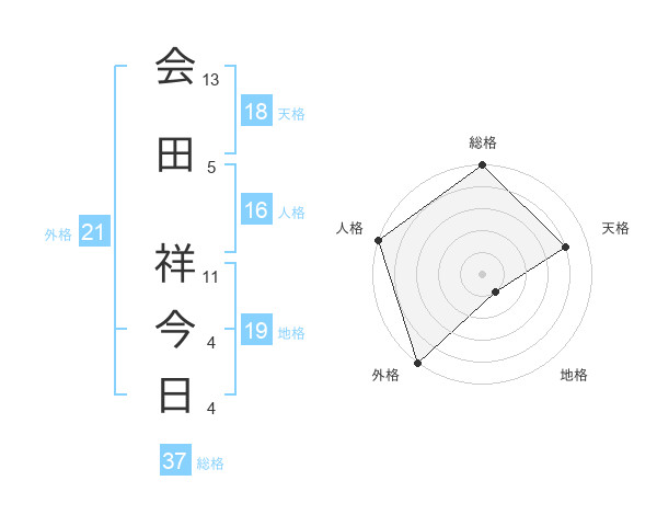 会田 祥今日さんを姓名の画数から五運を鑑定