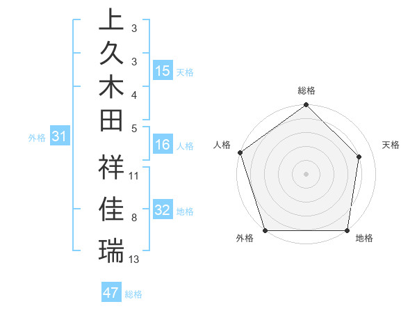 上久木田 祥佳瑞さんの外格は31画の5点!