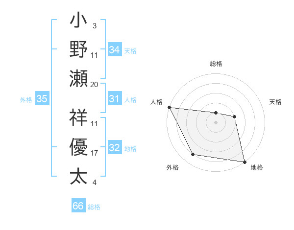 小野瀬 祥優太さんを姓名の画数から五運を鑑定