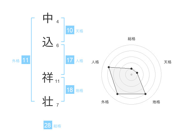 中込 祥壮さんを姓名の画数から五運を鑑定