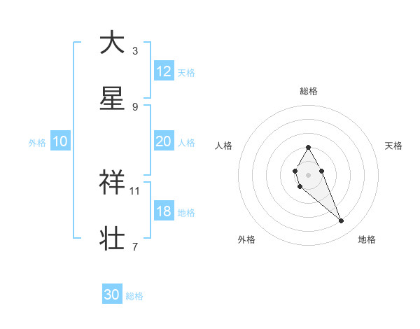大星 祥壮さんの総格は30画の2点!