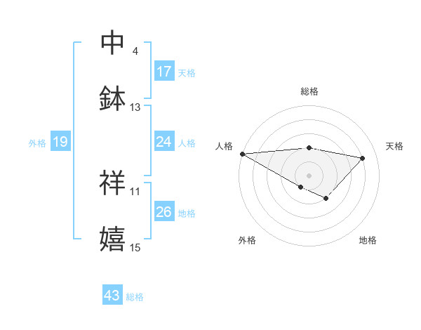 中鉢 祥嬉さんの天格は17画の4点!